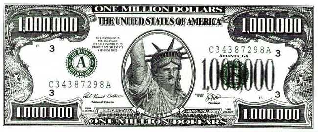 brochure and a fake Million Dollar Bill (attached - see below) so they
